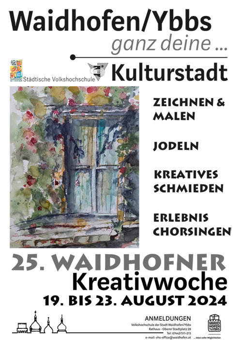 Anmeldungen bei Fr. Veronika Gegenbauer 07442-511-213 oder per E-Mail unter vhs-office@waidhofen.at